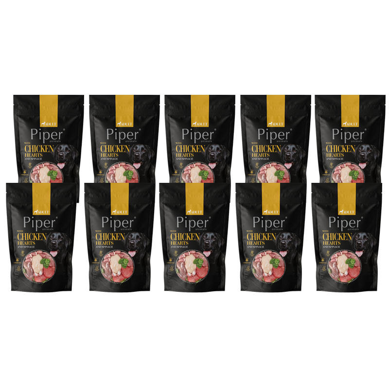 Mokra Karma dla psa Piper Animals z sercami z kurczaka i szpinakiem zestaw 10 x 500 g