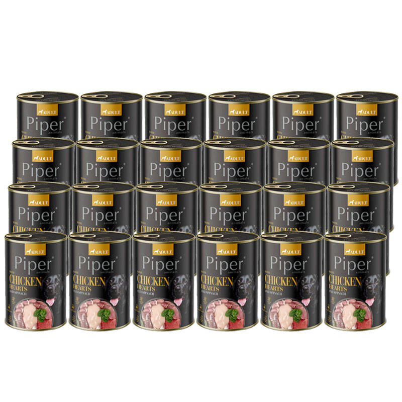 Mokra Karma dla psa Piper Animals z sercami z kurczaka i szpinakiem zestaw 24 x 400 g