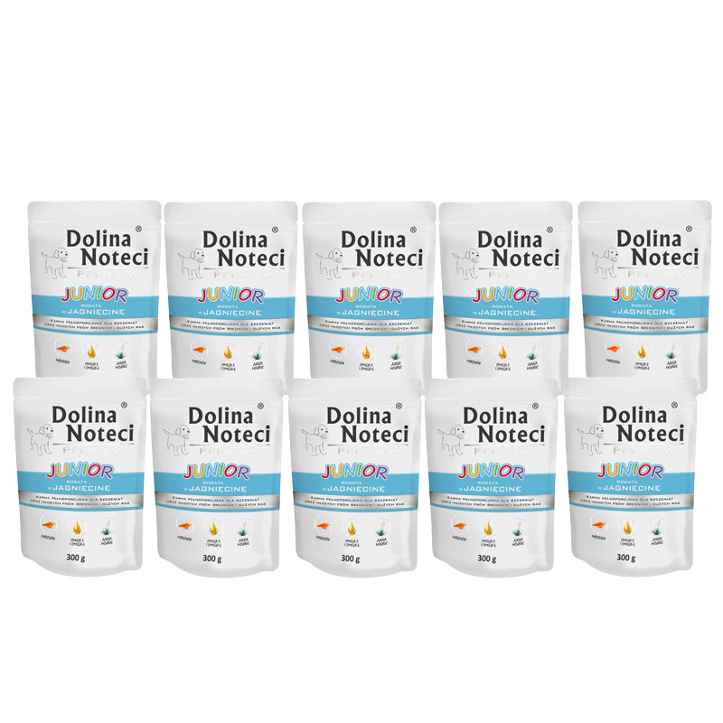 Mokra karma dla psa junior Dolina Noteci Premium bogata w jagnięcinę zestaw 10 x 300 g
