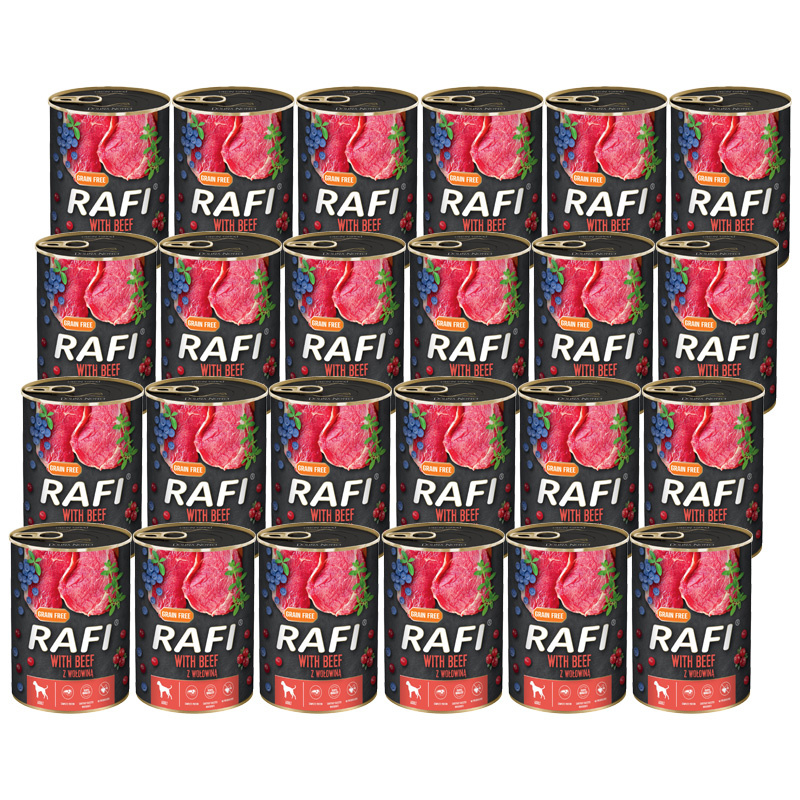Mokra karma dla psa Rafi z wołowiną zestaw 24 x 400 g