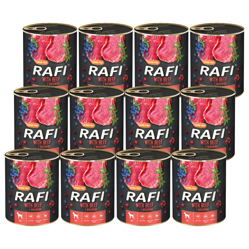 Mokra karma dla psa Rafi z wołowiną zestaw 12 x 800 g
