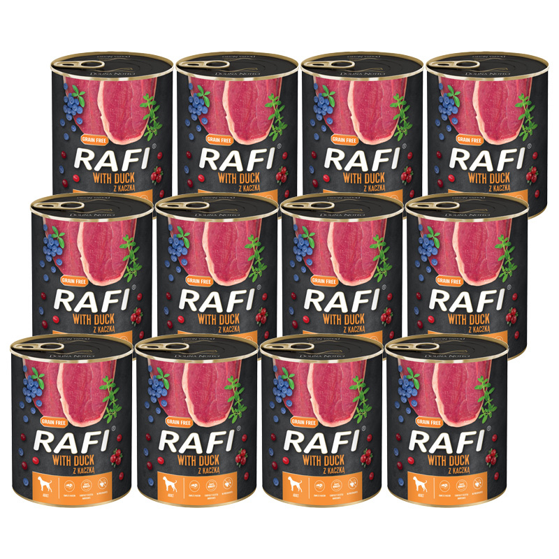 Mokra karma dla psa Rafi z kaczką zestaw 12 x 800 g