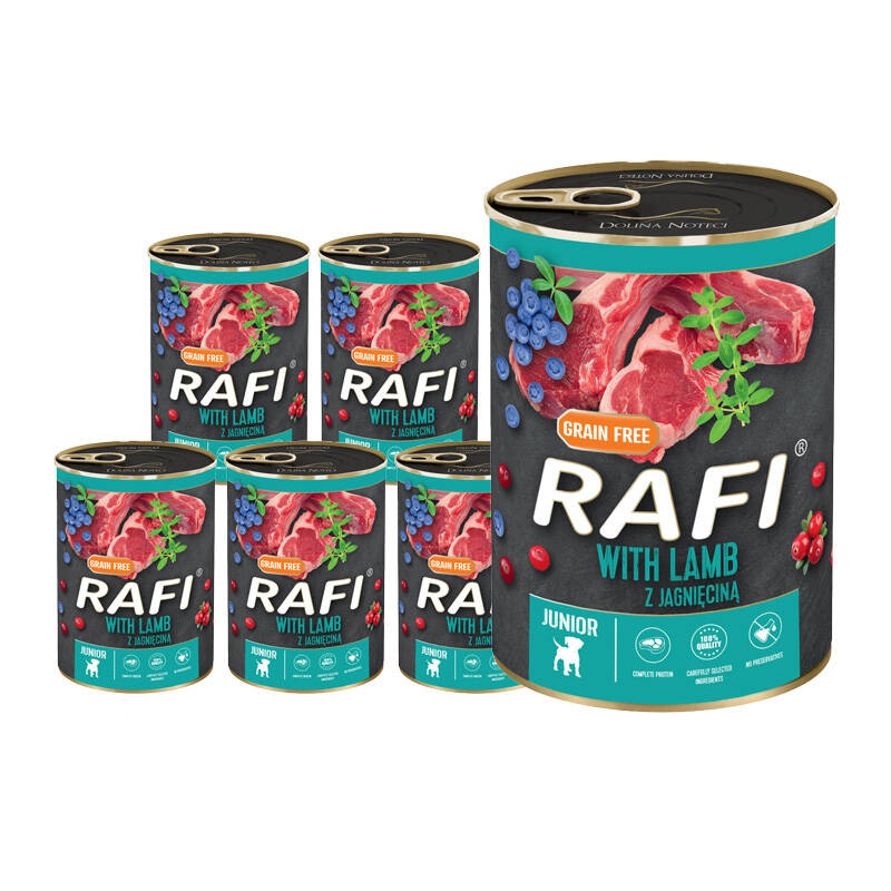 Mokra karma dla psa junior Rafi z jagnięciną zestaw 24 x 400 g