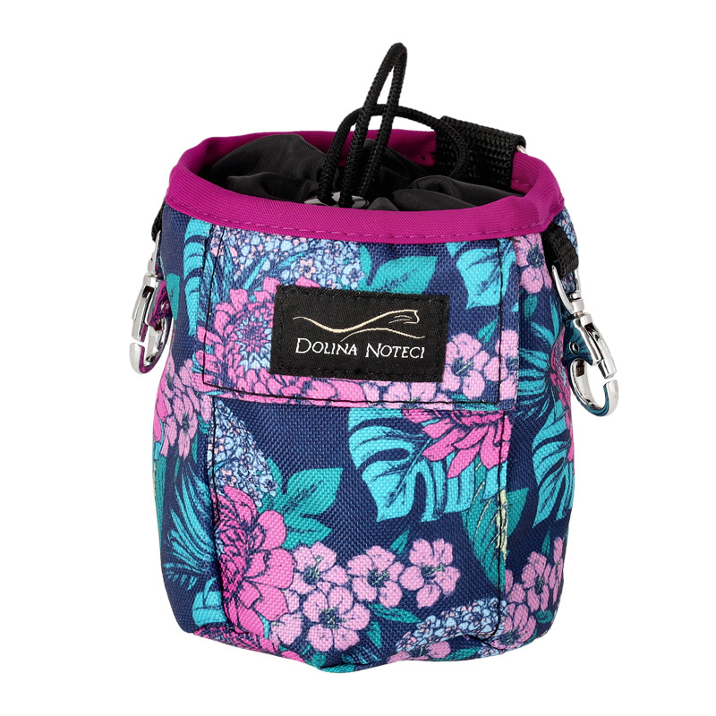 Zgrabny, a jednocześnie pojemny woreczek na podszewce to niezbędny gadżet podczas spacerów, pomieści mnóstwo pyszności dla psów odbywających szkolenie pozytywne lub uprawiających agility. Treserka wykonana jest z mocnego, wodoodpornego, łatwego w utrzymaniu czystości materiału w kwiatowy wzór. Ściągany sznurkiem woreczek można przyczepić do paska za pomocą wszytej taśmy lub karabińczyka. Produkt wykonany w Polsce z wysokiej jakości materiałów.