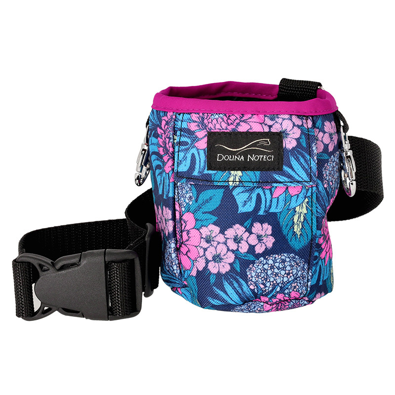 Zgrabny, a jednocześnie pojemny woreczek na podszewce to niezbędny gadżet podczas spacerów, pomieści mnóstwo pyszności dla psów odbywających szkolenie pozytywne lub uprawiających agility. Treserka wykonana jest z mocnego, wodoodpornego, łatwego w utrzymaniu czystości materiału w kwiatowy wzór. Ściągany sznurkiem woreczek można przyczepić do paska za pomocą wszytej taśmy lub karabińczyka. Produkt wykonany w Polsce z wysokiej jakości materiałów.