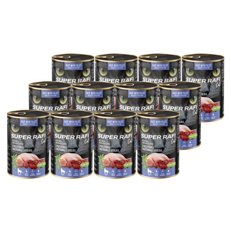 Karma mokra dla kotów Super Rafi Cat z przepiórką i wątróbką z królika 400 g (12 szt.)