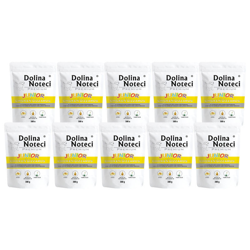 Mokra karma dla psa junior Dolina Noteci Premium bogata w żołądki z kurczaka zestaw 10 x 300 g