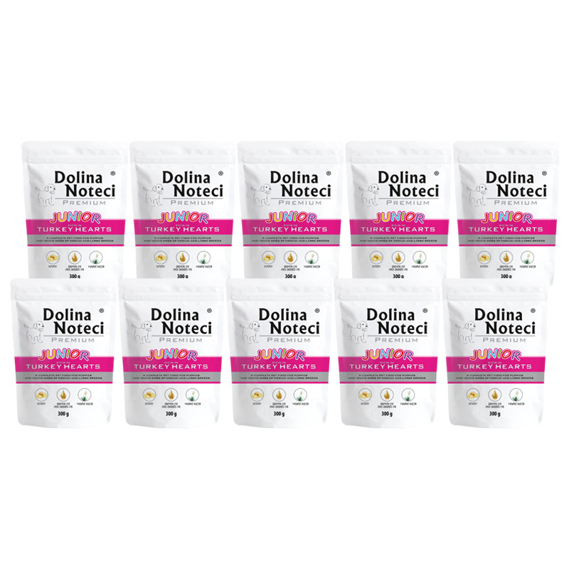 Mokra karma dla psa junior Dolina Noteci Premium bogata w serca z indyka zestaw 10 x 300 g
