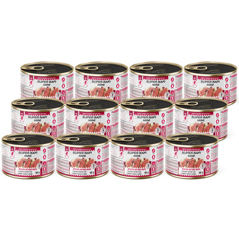 Super Rafi Mini Mokra karma dla psów małych ras z cielęciną i sercami z gęsi zestaw 12 x 185 g