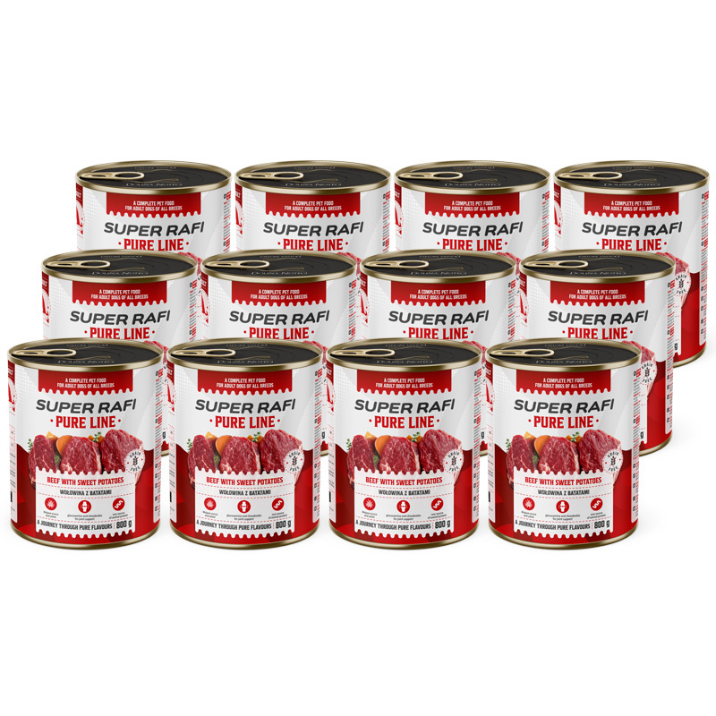Super Rafi Pure Line Mokra karma dla psa - wołowina z batatami zestaw 12 x 800 g