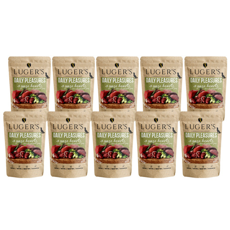 Karma mokra dla psa Luger's Daily Pleasures z sercami z gęsi, brokułem i zielonym groszkiem zestaw 10 x 500 g