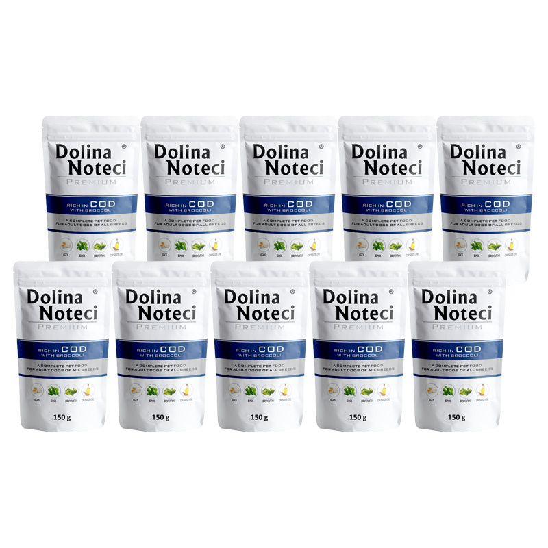 Mokra karma dla psa Dolina Noteci Premium bogata w dorsza z brokułami zestaw 10 x 150 g