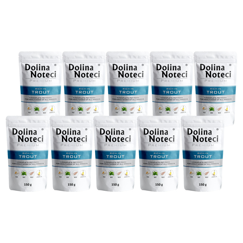 10 x Mokra karma dla psa Dolina Noteci Premium bogata w pstrąga saszetka 150 g