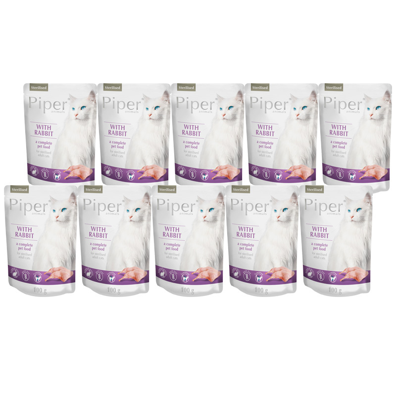 Mokra karma dla kotów Piper Animals Sterilised z królikiem zestaw 10 x 100 g