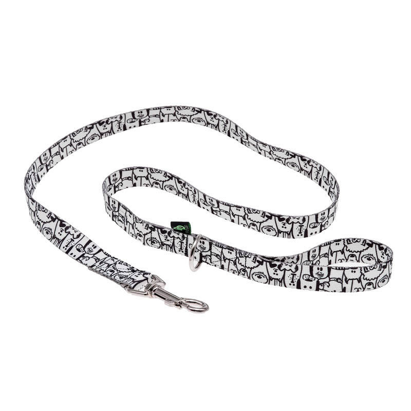 Dwustronna, czarno-biała smycz dla psa w wesoły wzór to gadżet, dzięki któremu pies będzie się prezentował stylowo na każdym spacerze. Mocna taśma, wytrzymały karabińczyk, staranne szycie – to wszystko sprawia, że ta designerska smycz ma wyjątkowo solidną konstrukcję, dlatego sprawdza się w każdych warunkach. Rączka, jest wygodna gdy się ją trzyma, nawet, gdy pies lubi szarpać. Dzięki regulacji możesz dać psu więcej swobody, a gdy nagle zajdzie taka potrzeba możesz go bezpiecznie prowadzić przy nodze. Smycz jest bardzo delikatna w dotyku, ale jednocześnie trwała i odporna na przetarcia. Idealnie pasuje do szelek i obroży z tym samym wzorem.
