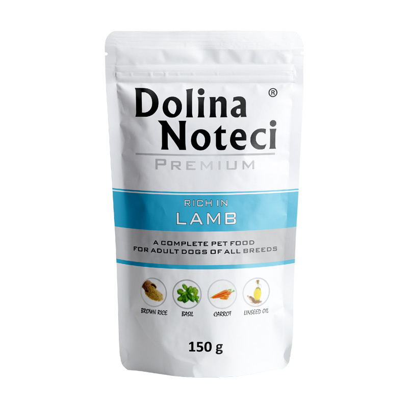 Karma Dolina Noteci PREMIUM bogata w jagnięcinę to źródło lizyny, leucyny, metioniny i cystyny, które wpływają korzystnie na skórę oraz sierść psów. Ponadto jest źródłem składników ważnych metabolicznie: witaminy B12, niacyny oraz cynku – składnika mineralnego odgrywającego istotną rolę w regulacji funkcji skóry.