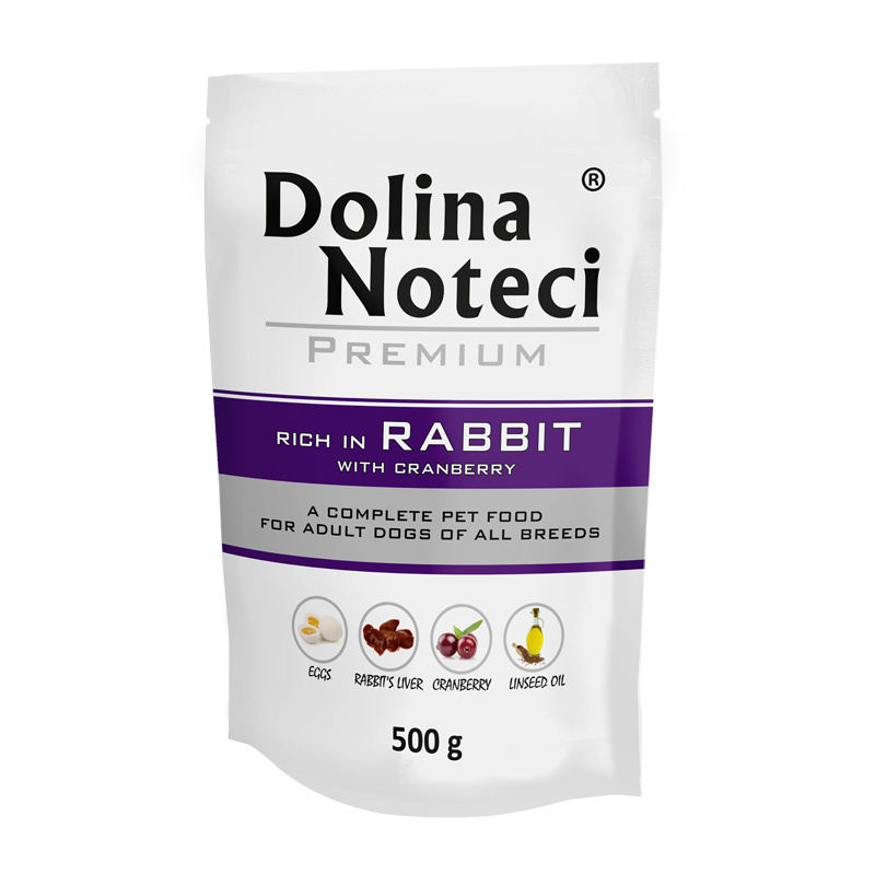 Mokra karma dla psa Dolina Noteci Premium bogata w królika z żurawiną saszetka 500 g (5 szt.)