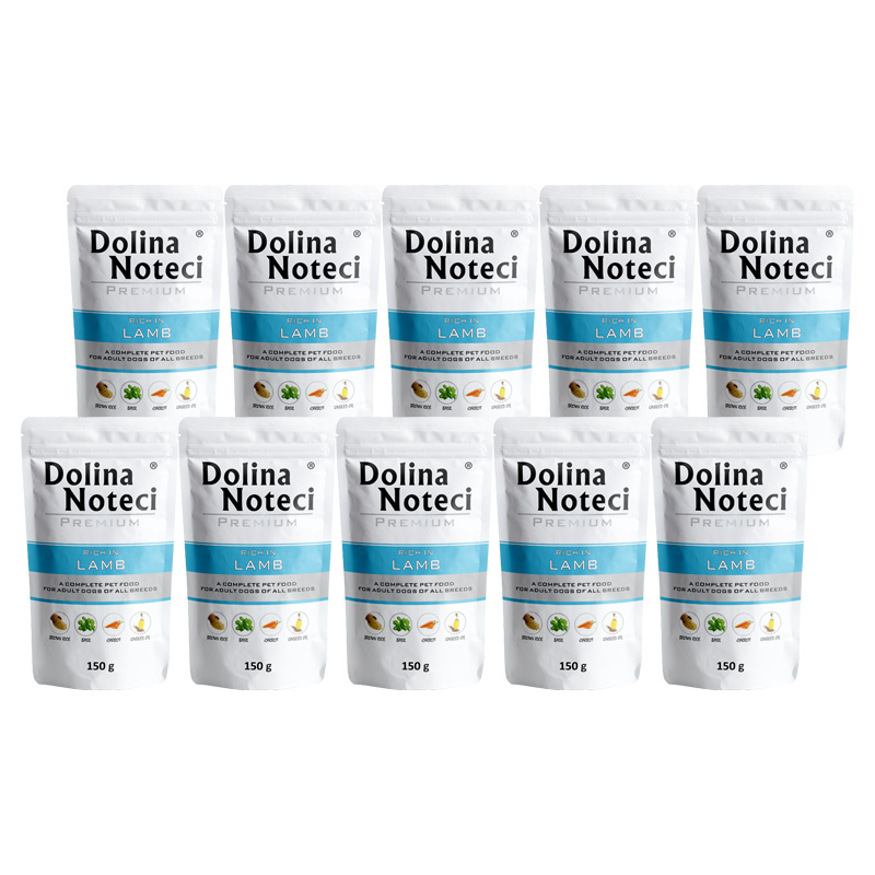 Mokra karma dla psa Dolina Noteci Premium bogata w jagnięcinę saszetka 10 x 150 g